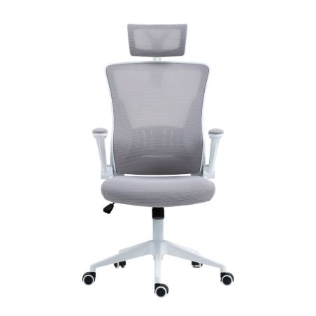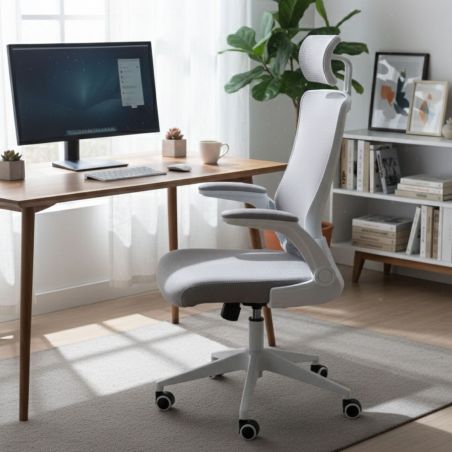 Fauteuil de bureau en maille gris avec appui-tête et accoudoirs réglables - AXIUM.