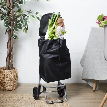 Chariot de courses noir à 2 roues en polyester (H87 cm).