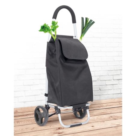 Chariot de courses pliable noir à 2 roues en Polyester (39L).