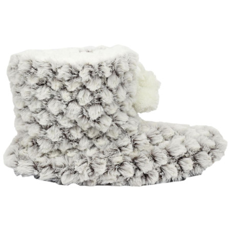 Chaussons Bottines Ultra doux Imitation Fourrure Sherpa Blanc et Gris Antidérapant avec Pompons.