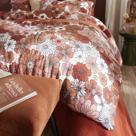 Laissez-vous séduire par son motif floral généreux aux inspirations "seventies". Ses nuances de terracotta, de rose poudré et de crème apportent une profondeur unique à votre décoration.