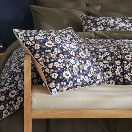 Face avant : 100% Polyester 220 GSM à motifs fleuris - Garnissage 100% polyester. Face arrière uni beige : 100% Coton chambray 185 GSM. Produit certifié OEKO-TEX.