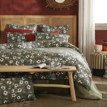 Chemin de lit 90x200cm gaze de coton imprimé Floral coloris vert - FLORIANE.