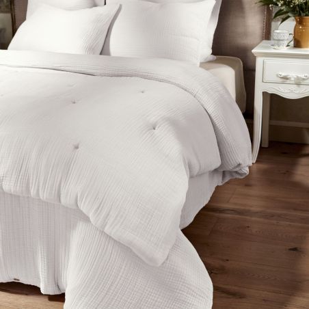Plongez dans un cocon de bien-être avec cette collection de linge de lit en double gaze de coton. Matière tendance par excellence, elle séduit par son aspect naturellement gaufré et sa texture aérienne qui invite instantanément à la détente.