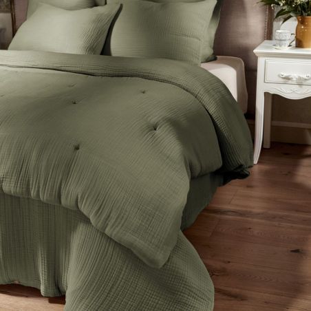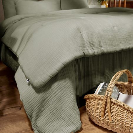 Chemin de lit 90x200cm gaze de coton uni coloris Romarin - INALIA.
