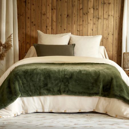 Chemin de lit 90x200cm fausse fourrure polyester coloris vert - ROZENN.