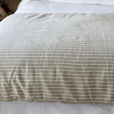 Chemin de lit 90x200cm coton tissage texturé coloris beige et blanc.
