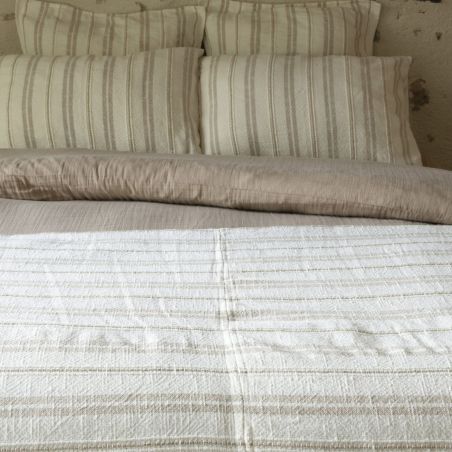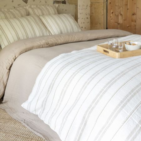 Chemin de lit 90x200cm coton tissage texturé coloris blanc rayé beige - TITOUAN.
