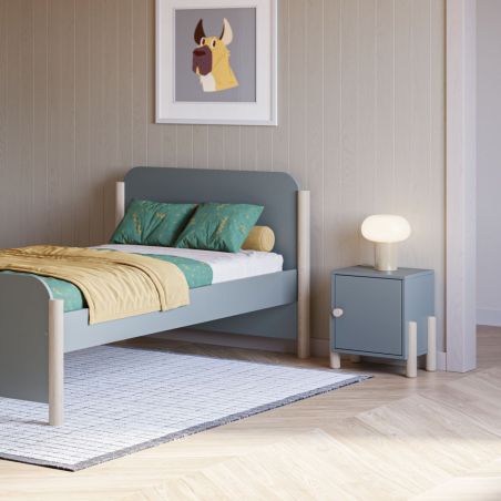 Ce chevet au design épuré s’intègre parfaitement dans une chambre d’enfant moderne. Ses lignes arrondies et ses pieds en bois clair apportent une touche de douceur et de naturel à l’espace.