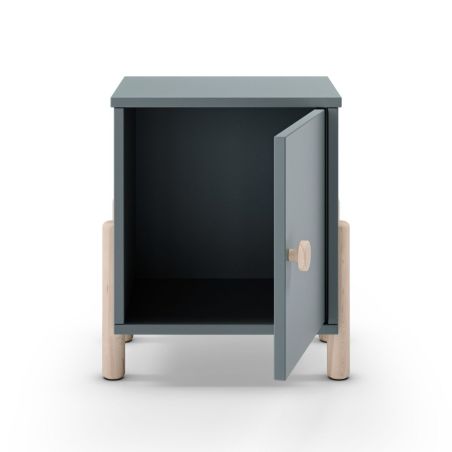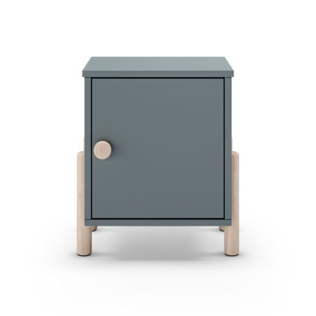 Chevet 1 porte en MDF et pin massif laqué vert kaki pieds en pin naturel - ENORA.