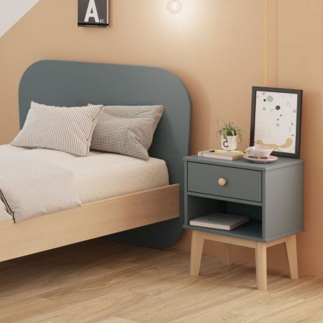 Il combine astucieusement un tiroir coulissant (idéal pour les objets personnels et une niche ouverte parfaite pour les livres du soir par exemple.