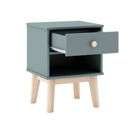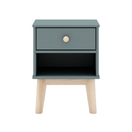 Chevet 1 tiroir et 1 niche en pin massif et MDF laqué vert kaki et naturel - KAINA.
