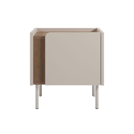 Chevet 1 porte en mélaminé beige et imitation bois avec découpe graphique bandeau - LIWENN.