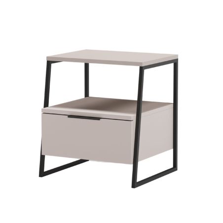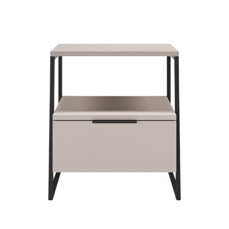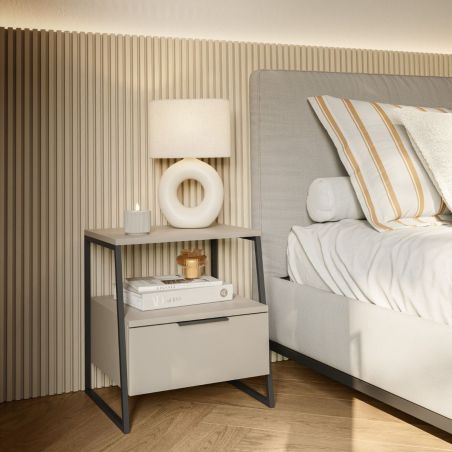 Chevet 2 niveaux avec 1 tiroir en mélaminé beige et structure en métal laqué noir - VELIANI.