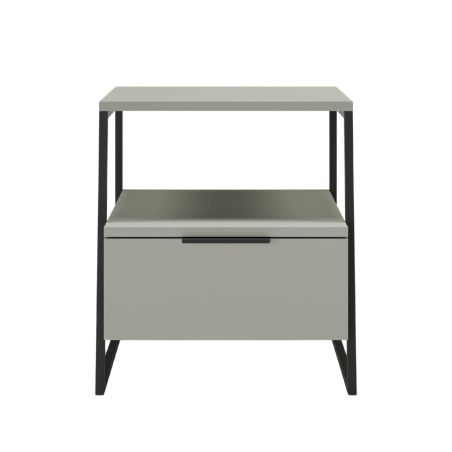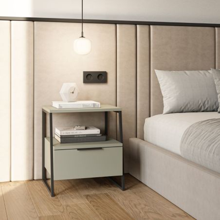 Chevet 2 niveaux avec 1 tiroir en mélaminé vert sauge et structure en métal laqué noir - VELIANI.