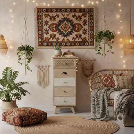 Chiffonnier Coiffeuse 5 Tiroirs en Manguier Massif de la gamme Tromso.