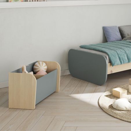 Coffre à jouet en pin massif naturel et MDF laqué vert kaki - KAINA.