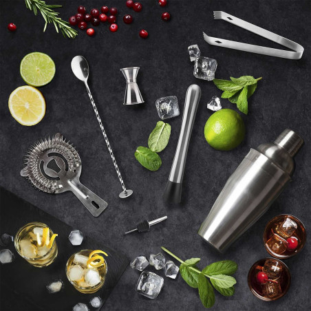 Coffret à Cocktail 7 Pièces + Support en Bambou.