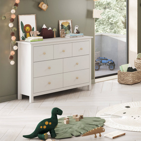 Commode 7 Tiroirs en Pin Massif Blanc de la gamme Dava.