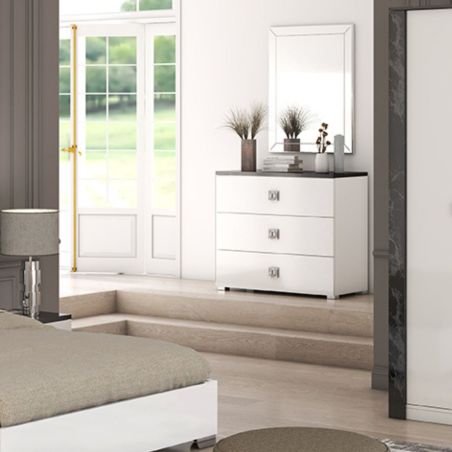 Commode 3 Tiroirs Laquée Blanche Dessus Noir Aspect Marbre de la gamme Gaïa.
