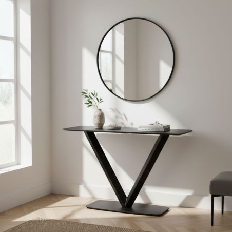 Console Aspect Céramique Grise Pied Central V de la gamme Karu.