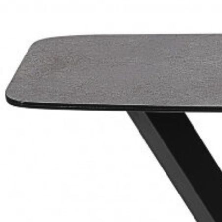 Piètement en acier, laqué époxy anthracite mat. Plateau en verre feuilleté 12mm, peinture cuite au four, finition aspect céramique (résistant aux rayures).