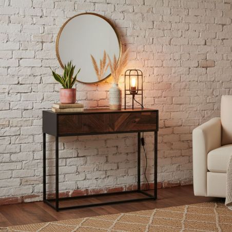 Console 2 Tiroirs en Métal Noir et Bois Recyclé de la gamme Jordan.