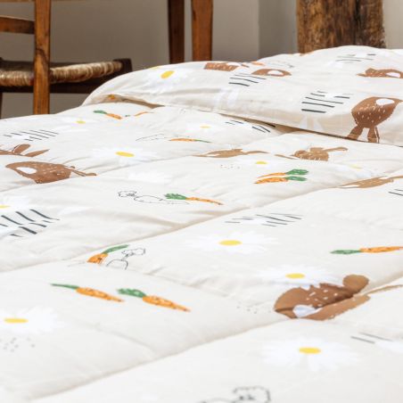 Couette Imprimée Lapin 140x200 cm + 1 Taie d'oreiller 60x60 cm de la gamme Bunny.