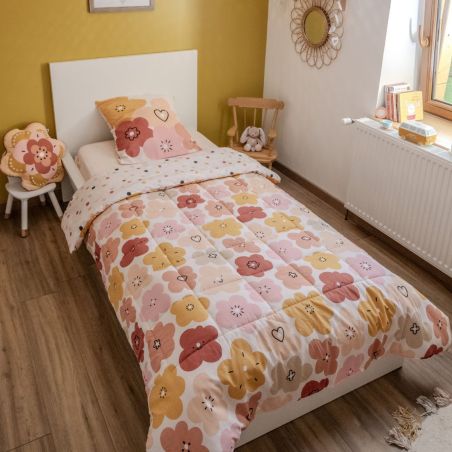 Couette imprimée 140x200cm + 1 taie d'oreiller 63x63cmcoton motif floral seventies - BARBAFLEUR.