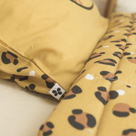 Apportez une touche d'aventure et d'élégance à la chambre de votre enfant avec notre parure de lit. Son imprimé léopard stylisé et ses nuances ocre créent une atmosphère chaleureuse, parfaite pour s'évader au cœur de la savane sans quitter son lit.