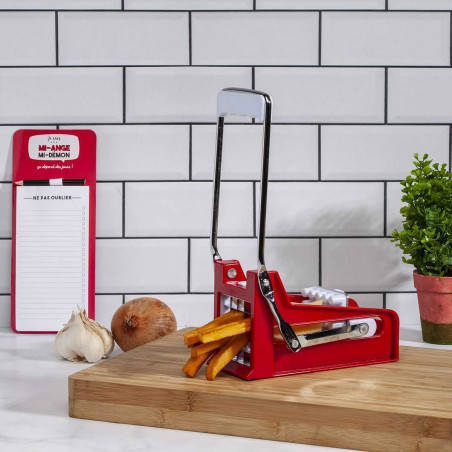 Gain de temps garanti ! Epluchez vos pommes de terre, placez-les dans ce coupe frites puis actionnez le mécanisme pour découper et obtenir des frites maison.