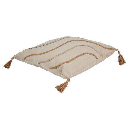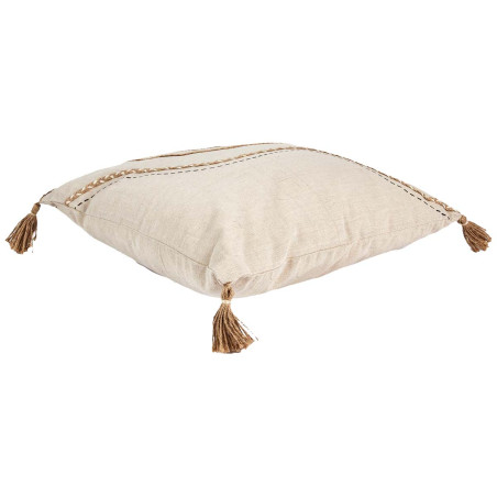 Coussin 40x40cm Beige Motifs Vagues Tressés avec Pompons.