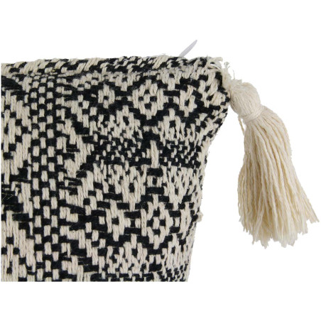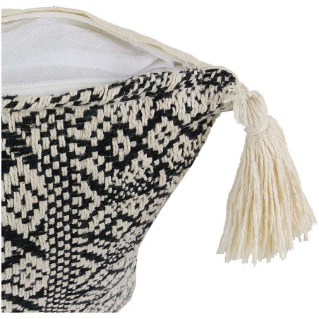 Coussin 40x40cm Style Ethnique Noir et Blanc Déhoussable avec Pompons.