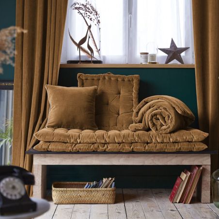 Coussin Déhoussable 40x60cm Velours de Coton Coloris Camel - HARRIS.