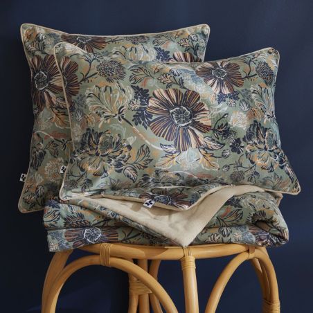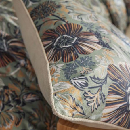 Face avant : 100% Polyester 220 GSM à motifs fleuris - Face arrière uni beige : 100% Coton chambray 185 GSM. Passepoil coton chambray avec zip - Produit certifié OEKO-TEX.