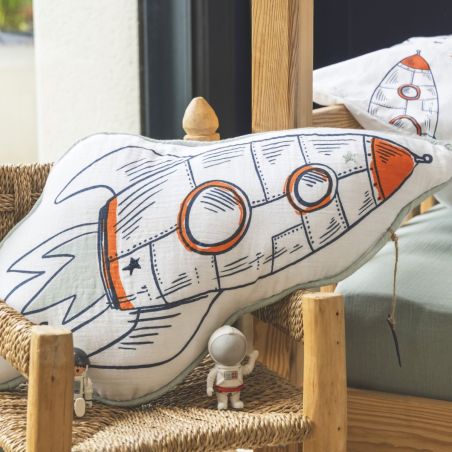 Coussin Déhoussable coton motif et forme Fusée - COMETE.