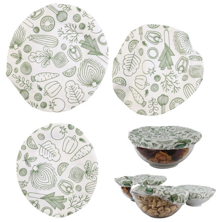 Pack 3 x 3 Couvercles Souples en Coton Réutilisables Motif Légumes.