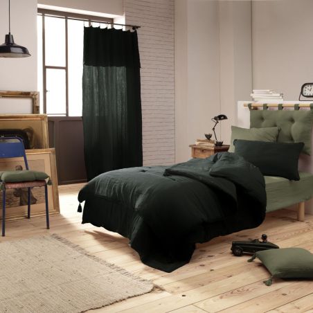Un linge respectueux de votre corps, agréable et douillet pour une chambre chaleureuse. Sa teinte vert-bleu foncée, légèrement grisée est très élégante et naturelle.