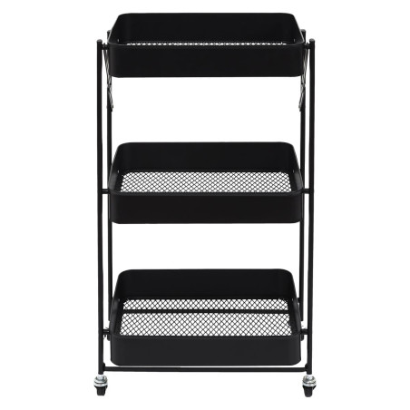 Desserte Pliable à Roulettes Industrielle en Métal Noir 3 Niveaux.