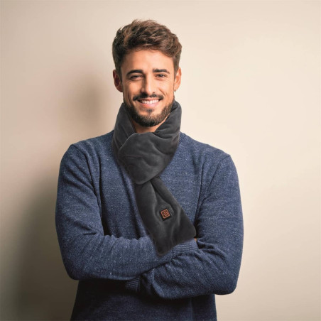 Echarpe Chauffante 74cm Tissu Polaire Gris Anthracite.