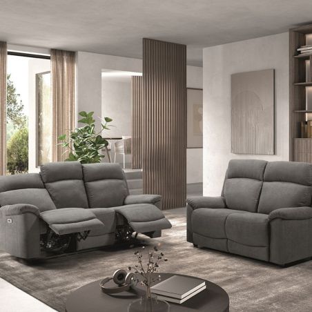 Ensemble 2 Canapés Fixe 2 Places et Relax Electrique Tissu Gris de la gamme Huesca.