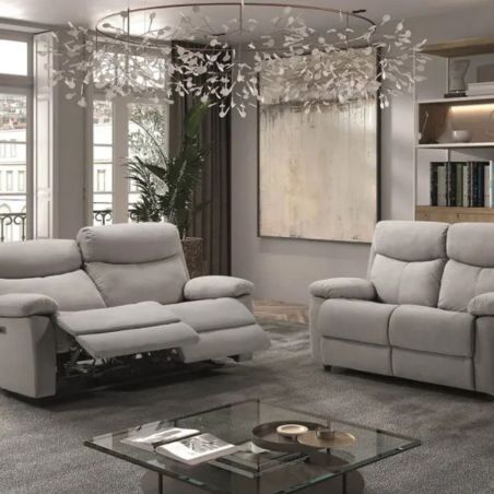Ensemble 2 Canapés Fixe 2 Places et Relax Electrique Tissu Gris de la gamme Tarifa.