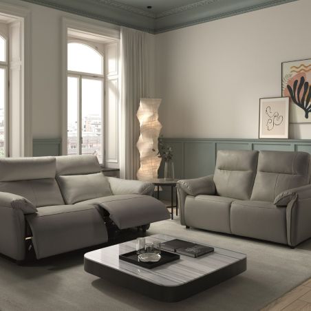 Canapés 3 Places Relax Electrique + 2 Places Fixe Cuir Gris éléphant de la gamme Mazaro.
