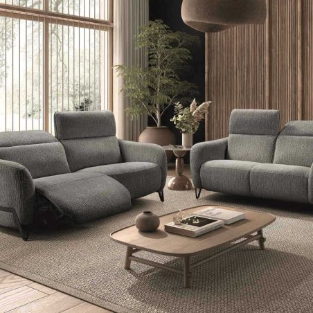 Ensemble Canapé relax électrique + canapé fixe tissu polyester gris de la gamme Amsten.
