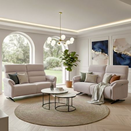Ensemble canapé relax électrique 3 places + canapé fixe 2 places tissu maillé beige - LAMA.