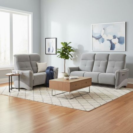 Ensemble canapé relax électrique 3 places + canapé fixe 2 places tissu maillé gris - AUSTRAL.