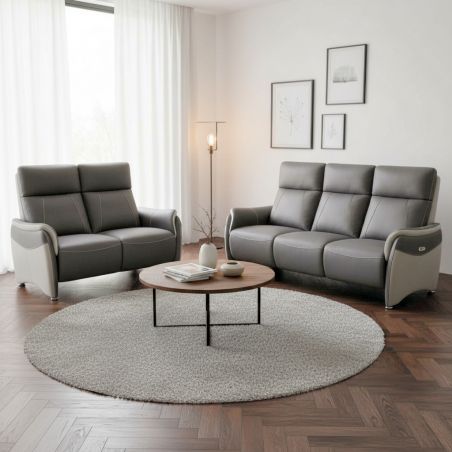 Ensemble canapé relax électrique 3 places + canapé fixe 2 places tissu micro grain gris - SANGY.