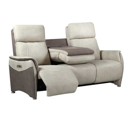 Ensemble canapé relax électrique 3 places + canapé fixe 2 places tissu micro grain brun - SANGY.