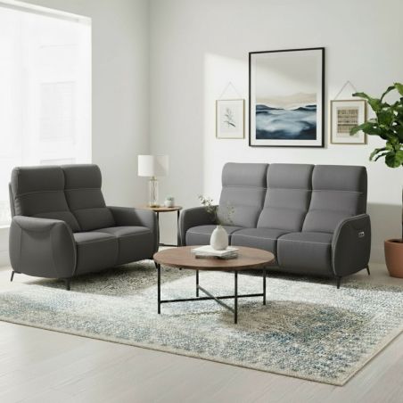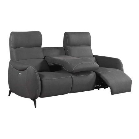 Ensemble canapé relax électrique 3pl + canapé fixe 2pl tissu micro peau gris foncé - SMALK.