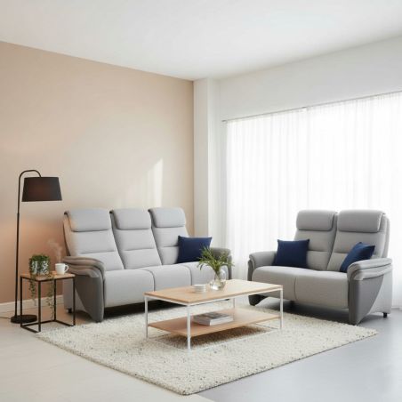 Ensemble canapé relax électrique 3 places + canapé fixe 2 places tissu polyester gris - NADIR.